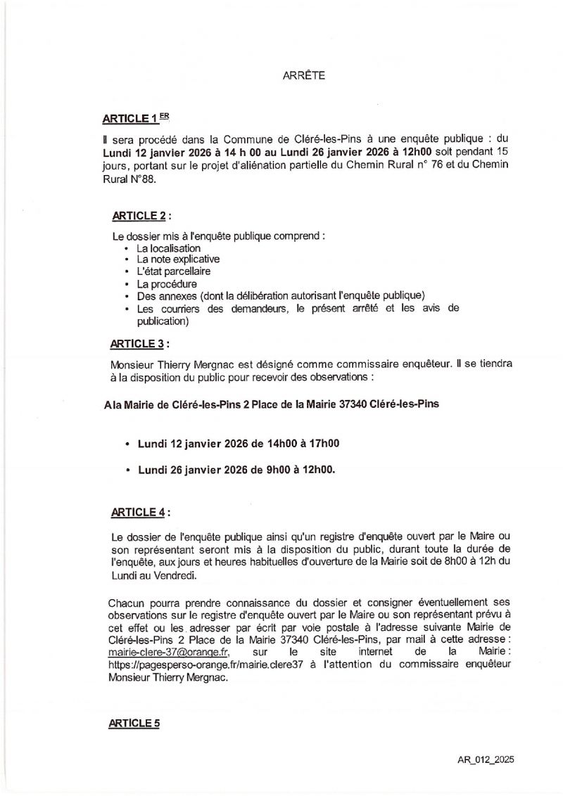Avis d'enquête publique